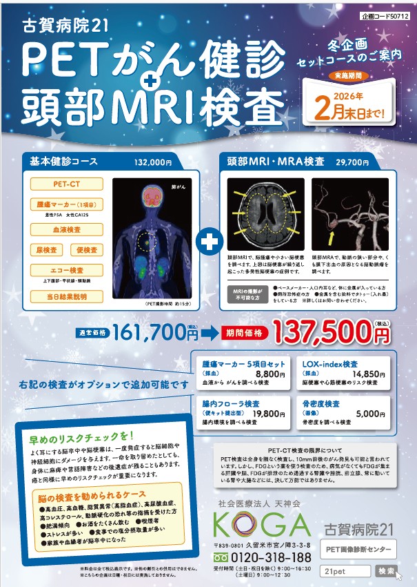 【古賀病院21】PETがん検診+頭部MRI検査 冬企画のお知らせ